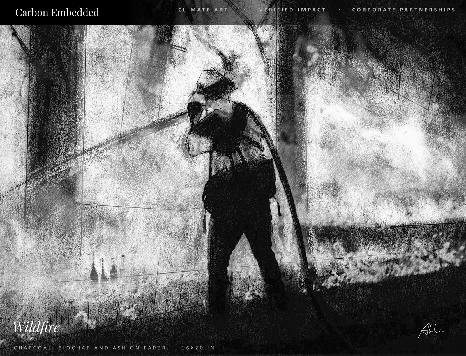 Each year, millions of acres burn across the United States. This charcoal artwork is dedicated to the heroic firefighters who put their lives on the line every day to save people and stand between communities and destruction, created in April 2021.